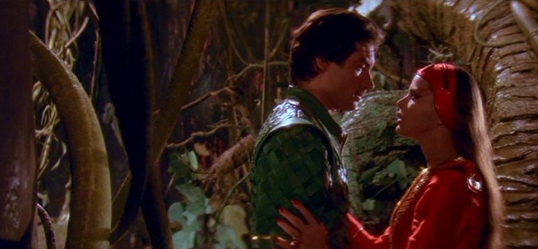 As Flash, Dale, and Dr. Zarkov enter Ming's chambers (they have been taken prisoner), we get a sense that all is not well in this tawdry universe. It would seem that the Tree People, ruled by Prince Barin (Timothy Dalton) and the Hawk People, headed by Prince Vultan (Brian Blessed), are at odds with one another. As the two princes are about to have at it, Klytus, Ming's gold-faced henchman, reminds them that no one shall die unless Emperor Ming wills it. And judging by his stoney demeanour, Ming ain't willing shit. The always thinking Dr. Zarkov sees the conflict between the Tree People and the Hawk People as an opportunity. Meaning, if he can convince them to put aside their differences and focus their energy on defeating Ming, who they secretly dislike, maybe he can save Earth from being destroyed after all.