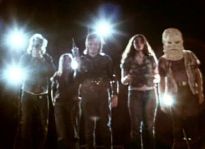 I don't often find myself looking away from the screen, but when I do, it's usually for a good reason. And I can't think of a better time to do so than the dismemberment scene that takes place near the end of The Last House on Dead End Street. You might want to turn the volume down as well, as the sound of that saw cutting through bone will probably haunt your dreams for years to come. I knew things were about to get grim when I first a caught a glimpse of the ghastly accoutrements they had laid out at the end of the dissecting table. When the screaming finally subsides, it's time to move to that not-so kooky realm where forced deer hoof fellatio and some well-rehearsed head drilling rule the day. The shot of a triumphant Terry Hawkins and his crew standing before their final victim is the stuff black metal album covers are made of. Sheathed in his trademark leather jacket, Terry in this moment is the personification of evil. And, I have to admit, it's a beautiful thing.