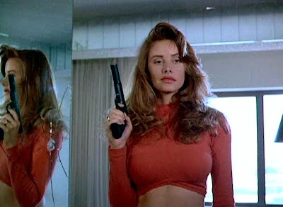 If you remember, I was quite taken with Miss London's brief appearance in Savage Beach (yeah, I remember). And it looks like she's still "busting heads and baking bread." Speaking of remembering stuff, do you recall the scene in Savage Beach when Rocky gets a bread making machine delivered to her restaurant? No? Well, I do. And I appreciated the fact that there's a reference to Rocky's bread making in Guns. These films have a tendency to reward attentive viewers.