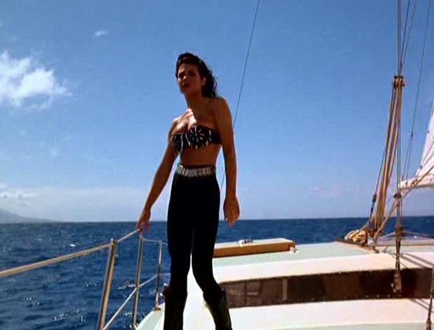 The only problem with Kane's plan is that Silk and Mika are both in cahoots with the federal government. That's right, they're spies. While Silk is deep undercover, Mika is only mildly so. Which means, it's up to Mika to steal the jade Buddha from Kane. With the help of a windsurfer named Cole (Buzzy Kerbox), Mika manages to get jade Buddha away from Kane.