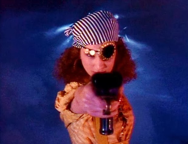 I'll admit, though, I was, to not put it mildly, horrified when I found out Dona Speir was in this film. Appearing in the opening credits sequence, one that features bikini-clad models wielding various weapons for a photo shoot, Dona can be seen aiming a bow and arrow in a yellow bikini. When I saw her I was like: Noooo! Anyone but her. But, as the film progressed, I slowly began to realize that it was her character in the Andy Sidaris films that I disliked so much, not Dona Speir.