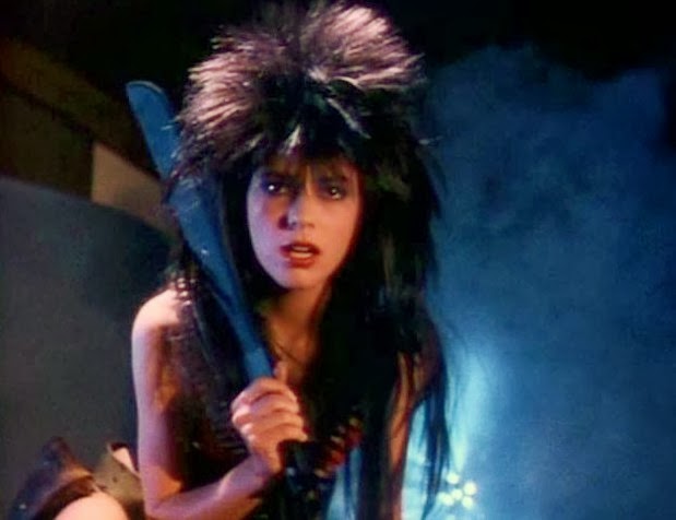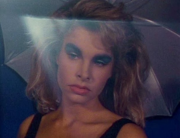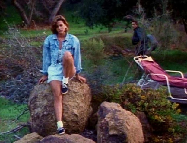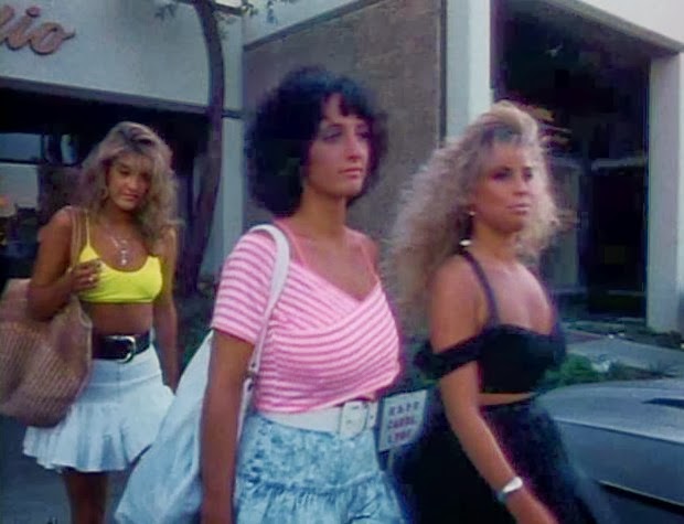 As Jack doing a private shoot with Cindy (one that includes a heavy metal wig and a shotgun), fellow models Rhonda (an uncredited Juliette Cummins) and Lisa (Susan Jennifer Sullivan) are fighting over Johnny by the pool. If the names of the actresses who play the other models sound familiar, that's because Juliette's in Slumber Party Massacre II and Susan's in Friday the 13th Part VII: The New Blood. In an out of left field plot development, Lisa pussyblocks Rhonda big time. That's right, just as Rhonda, utilizing her amazing legs, was about to seal the deal with Johnny, Lisa swoops in and bungles her chances. In other words, no cock for Rhonda.