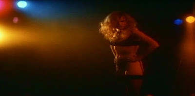 In order to meet his obligation to Crown International Pictures, writer-director-cinematographer David Oliver has Rex accidentally wander into the women's locker room. How did he mange that, you ask? One of Rex's primary tormentors removes the 'wo' from the women only sign on the door. How he got in there doesn't matter. What does matter is what he saw once he got in there. Removing her top almost immediately, Michelle Bauer and a bunch of her soon to be topless friends enter the locker room with a girlish glee. When they discover that a doofus named Rex in their midst, they proceed to chase him around the locker room; if you look closely, you'll notice that Michelle Bauer is brandishing a tennis racket during the chase.