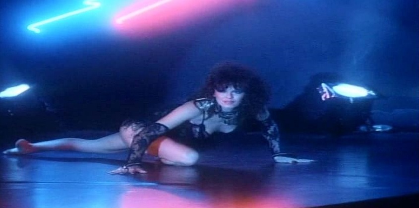 The last thing I expected to hear at the beginning of a film produced by Crown International Pictures was the synth-tastic sounds of SSQ's "Synthicide" blasting on the soundtrack. Another thing I didn't expect was the sight of a helicopter zipping across the sky. I mean, since when did films produced by Crown International be able to afford helicopters? And I'm assuming they had more than one helicopter since the helicopter in the opening scene is being filmed from what looks like another helicopter. Complicated aerial photography and the music of SSQ?!? Something does not compute. You think that doesn't compute, eh? Wait until I tell you the name of the movie I'm currently writing about. What's that? Oh, you say you already know the name of the movie I'm writing about. Well, anyway, for those who don't, it's Cavegirl. It's been a dream of mine to watch a film that features nothing but SSQ songs on the soundtrack, and it looks like Cavegirl is the film that has decided step up to the plate to fulfill that dream. I repeat, Cavegirl is the film that has made my wish to hear non-stop SSQ music in a motion picture finally come true. Cavegirl. Sure, you can hear SSQ's music in The Return of the Living Dead. You can even hear it at the end of Beyond the Black Rainbow. Yeah, but Cavegirl is not only wall-to-wall SSQ, the film's score is by Jon St. James, and even Stacey herself has a small post-prehistoric role as the enabling girlfriend of a bully/asshole.
